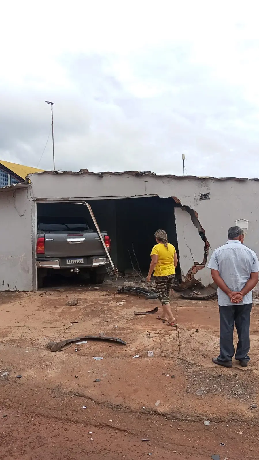 No local, os militares constataram que uma caminhonete Hilux colidiu com um veículo Strada em um cruzamento. Com o impacto, um dos veículos atingiu uma pedestre que caminhava pela calçada, fazendo com que ela fosse arremessada para o interior de uma residência.
