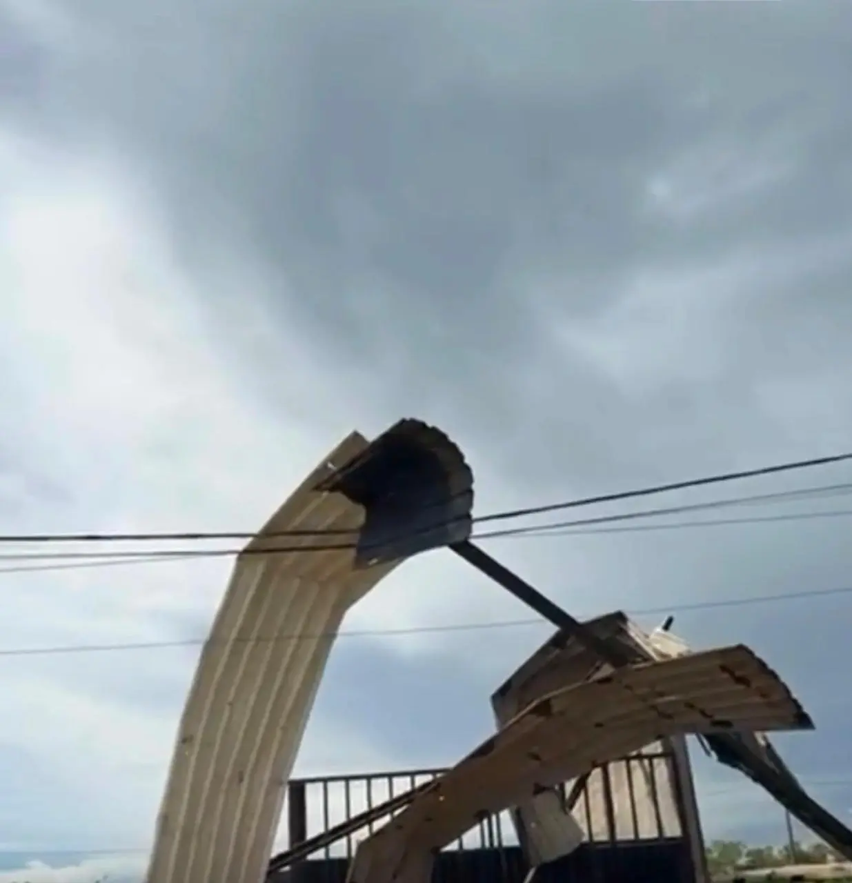 Em um dos vídeos gravados no local, é possível ver parte da estrutura do galpão sobre o caminhão. Em outro registro, aparecem pedaços espalhados pelo chão. Uma pessoa que estava no local e não foi identificada comentou sobre a força do vento: “O trem estava ali que foi parado do outro lado da rua, do outro lado da rua. Olha o tamanho do cano que o vento levou. Aqui é esse tamanho, juntado com aquele tamanho ali, o tamanho das barras. Olha lá onde a última terra foi parada”.